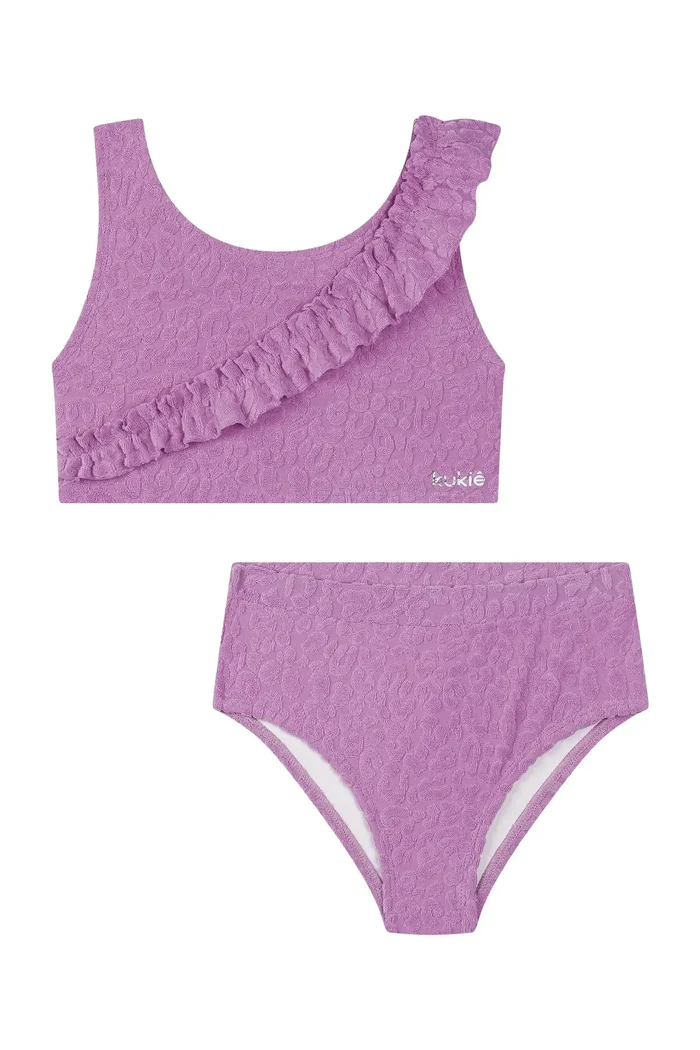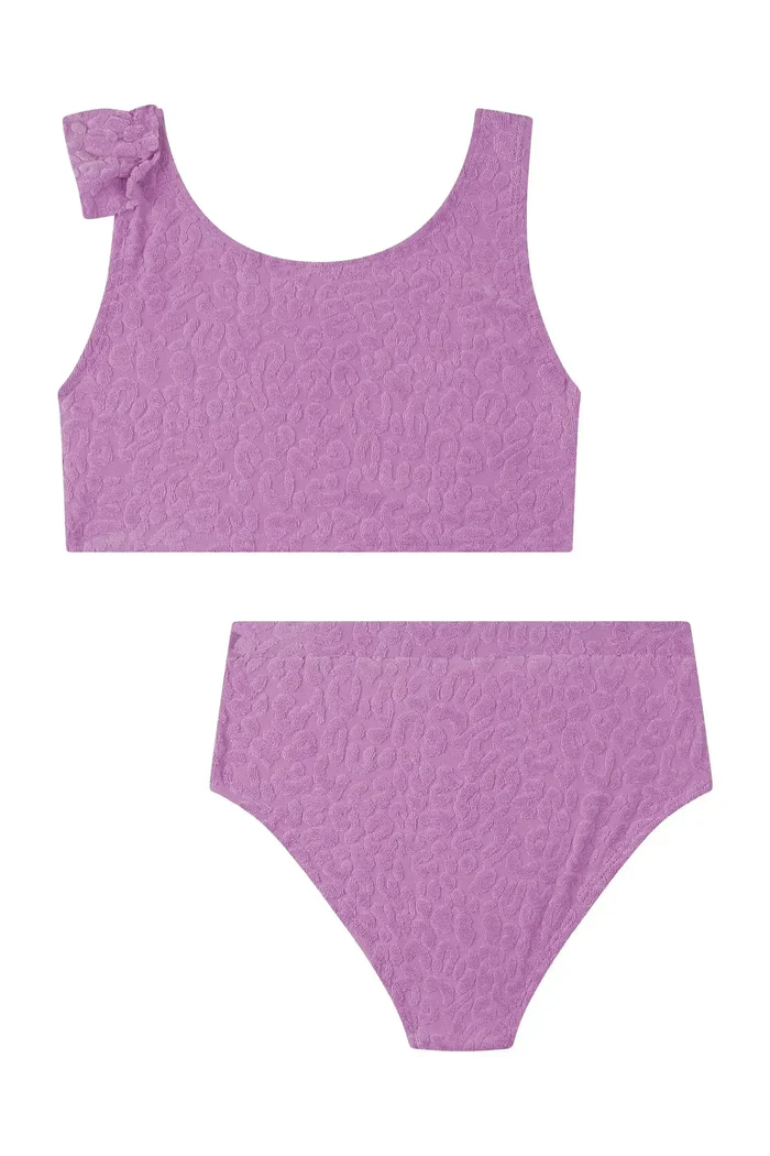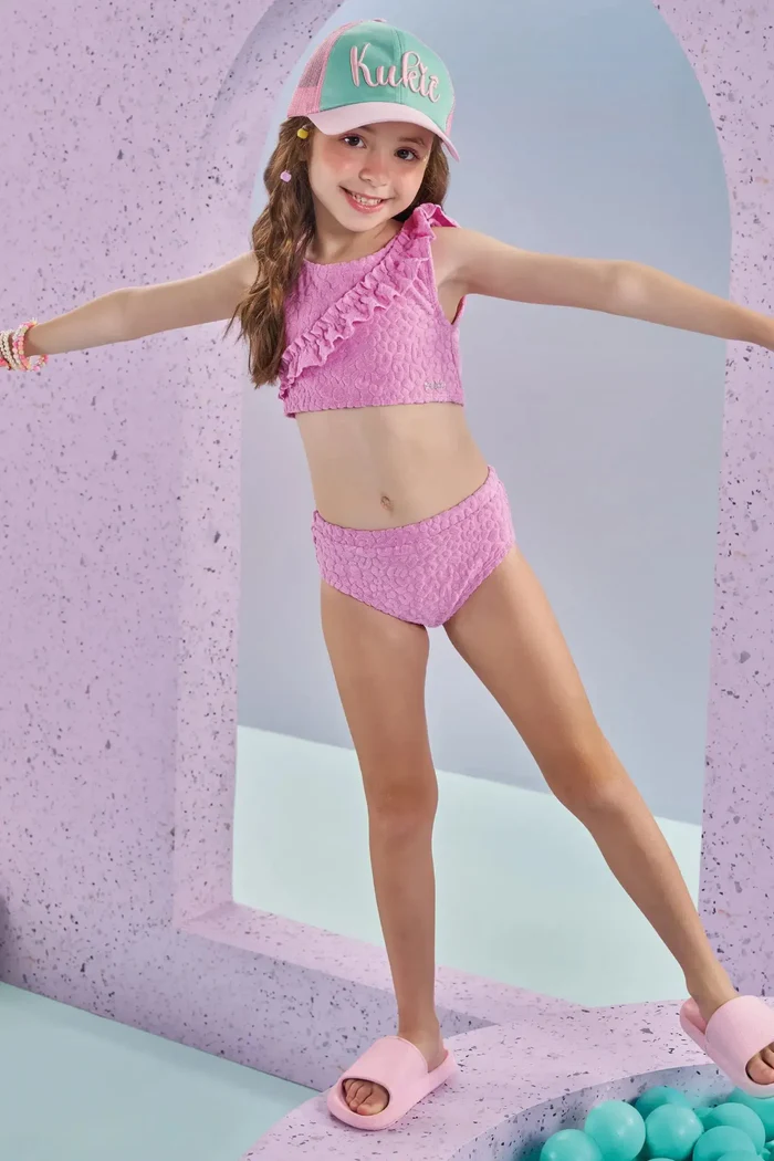 O biquíni em malha atoalhada, prepara as meninas para o verão com muito estilo e conforto! Disponível em uma cor super estilosa – lilás – este biquíni é perfeito para os dias quentes e cheios de aventura. O babado franzido, adiciona um charme especial à peça.