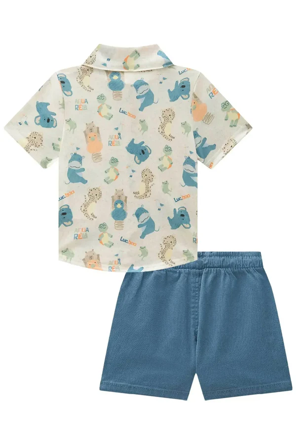Conjunto de Camisa em Malha Wave e Bermuda em Sarja Onix Elastano 87860 LucBoo Bebê Menino