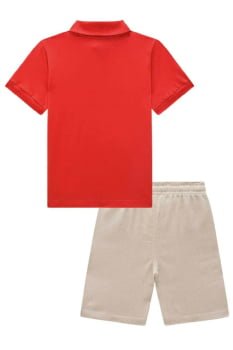 Conjunto infantil Luc. Boo camisa polo em meia malha e bermuda em tecido eco elastano, elástico e ajuste no cós.