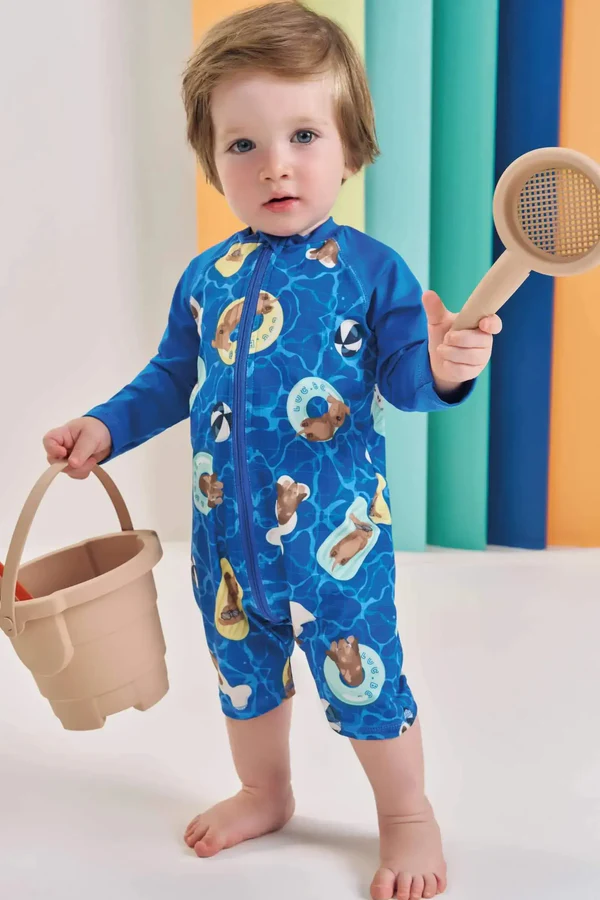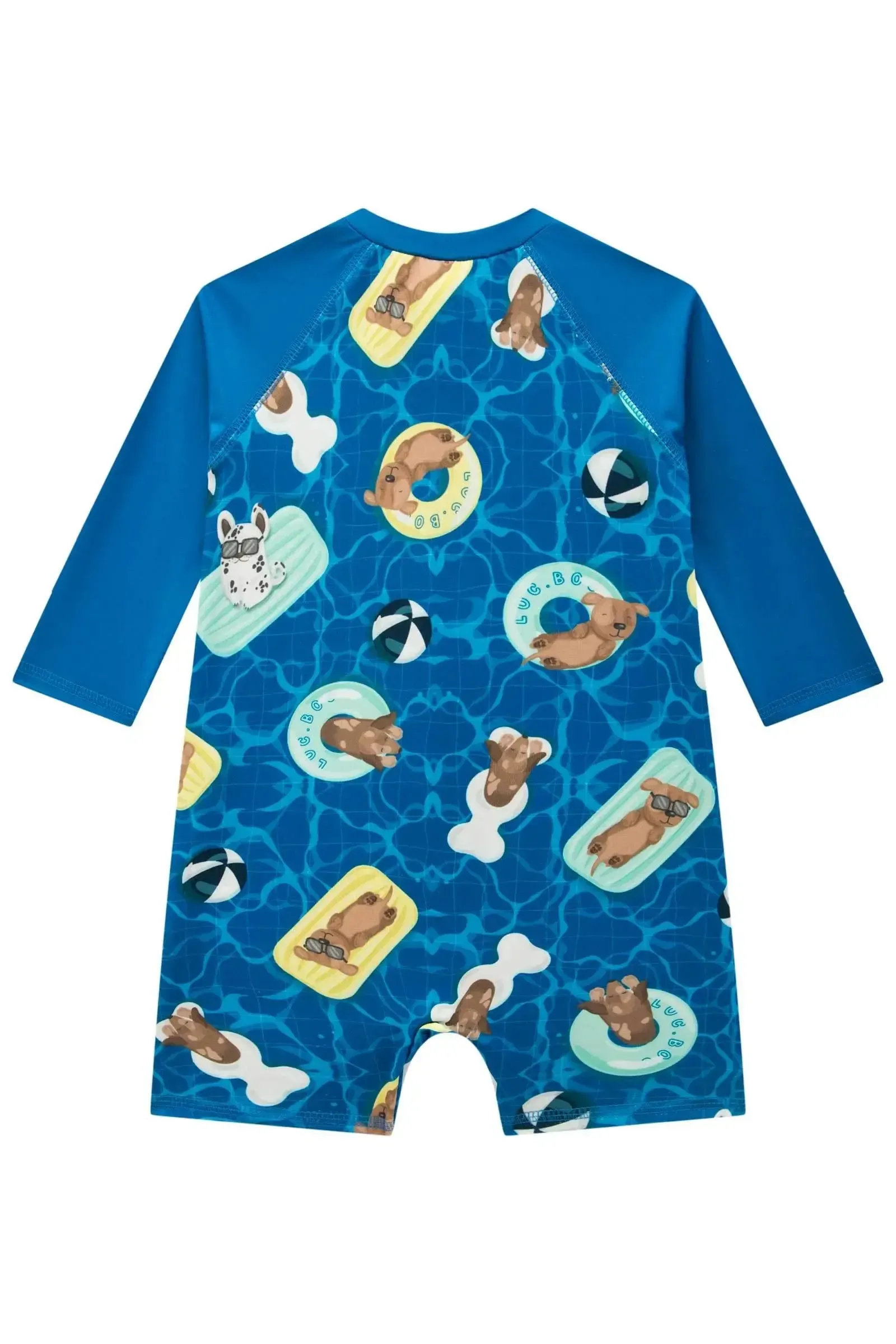 O macacão malha UV dry com proteção UV50+ é perfeito para os meninos aproveitarem o verão com muito estilo e conforto! Disponível em uma cor super estilosa – azul – ele oferece um toque super macio e confortável, garantindo proteção para a pele dos meninos! A sublimação divertida, adiciona um charme especial à peça.