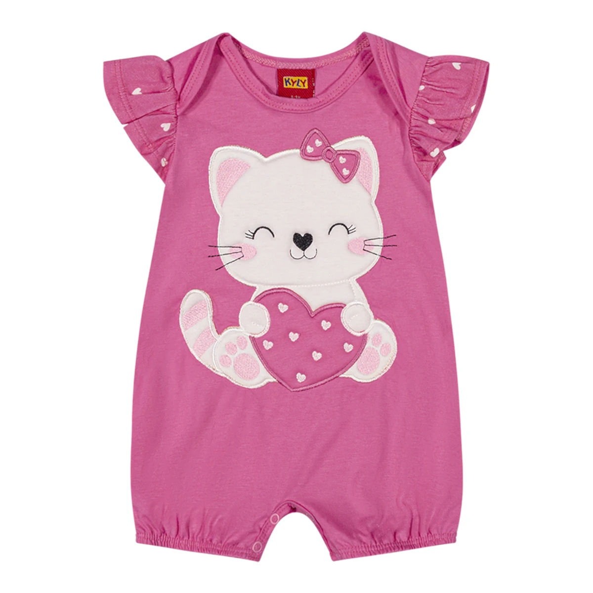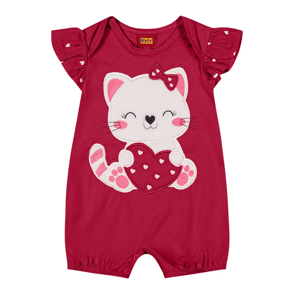 O Macaquinho Bebê Menina GATINHA Bordado com Enchimento da Kyly é produzido em meia malha, composto por 100% algodão.