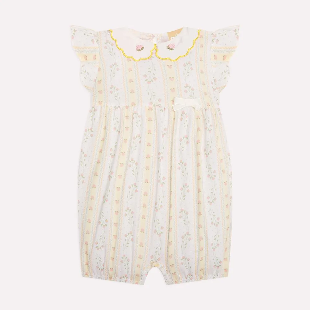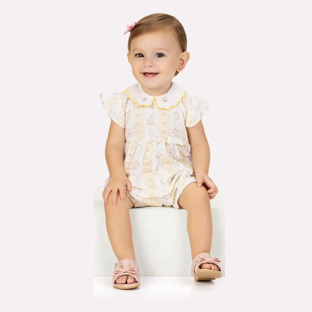 Um encanto de delicadeza para as pequenas! O macacão bebê menina Milon é pura doçura e conforto, ideal para deixar cada momento ainda mais especial. Confeccionado em tricoline 100% algodão, o modelo oferece toque suave e leve, perfeito para a pele sensível do bebê. Sua estampa rotativa de flores em tons suaves traz um ar romântico e encantador, enquanto o bordado delicado no colarinho e a flor aplicada na cintura adicionam um toque artesanal cheio de charme.