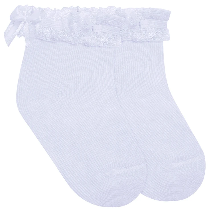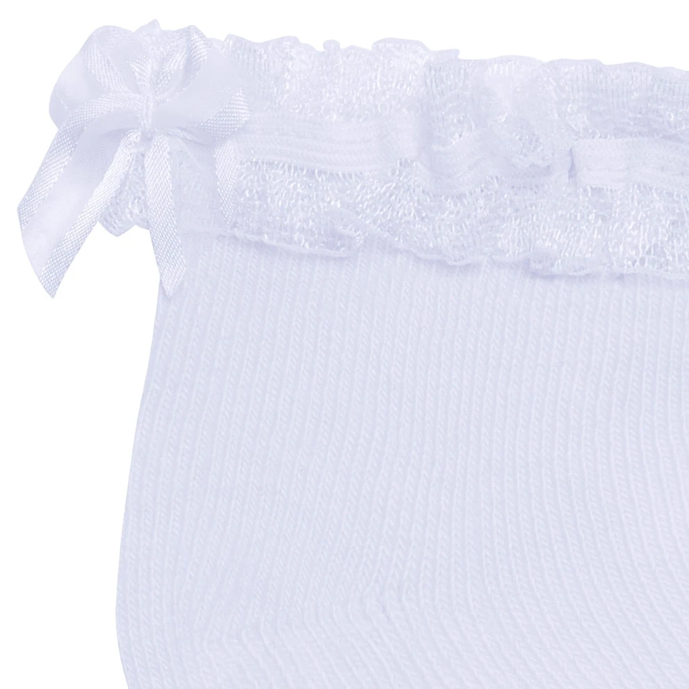 Meia Soquete para bebe Branca Renda & Laço – Puket