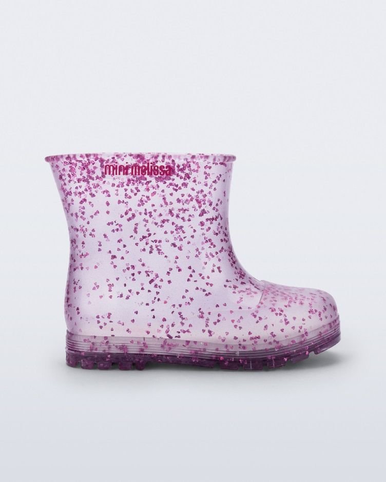 A Mini Melissa Welly Shiny Elements Baby é a bota de bebê que transforma qualquer dia em um momento mágico. Com efeito jelly translúcido e aplicação de glitters em formato de coração, ela brilha a cada passinho, trazendo diversão e encanto para o look das pequenas.