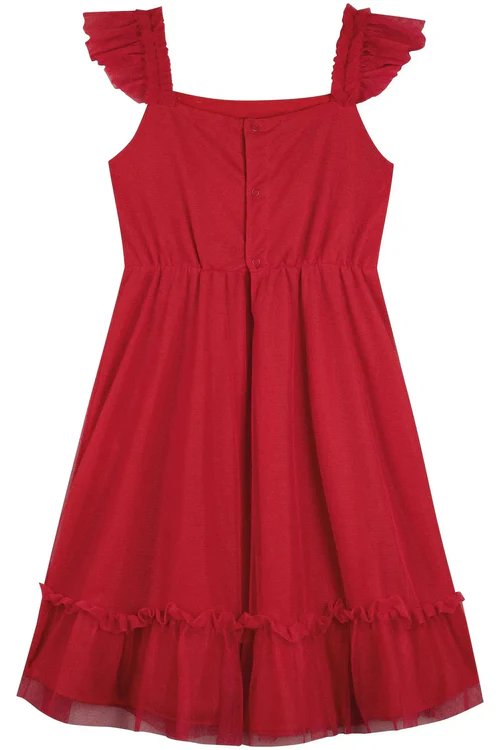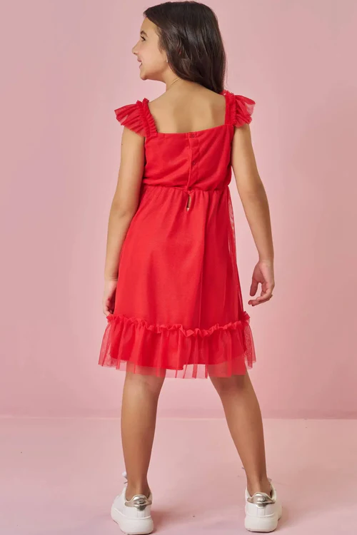 O vestido em tule com elastano, prepara as meninas para o verão com muito estilo e conforto! Disponível em uma cor super estilosa – vermelho – este vestido é perfeito para os dias quentes e cheios de aventura, garantindo a combinação perfeita de delicadeza e conforto! O strass, adiciona um charme especial à peça.