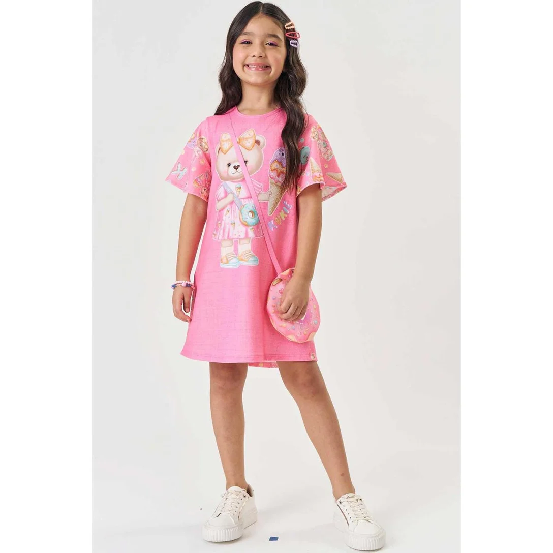 Vestido Kukie Infantil Ursinho Malha Power Menina – Rosa